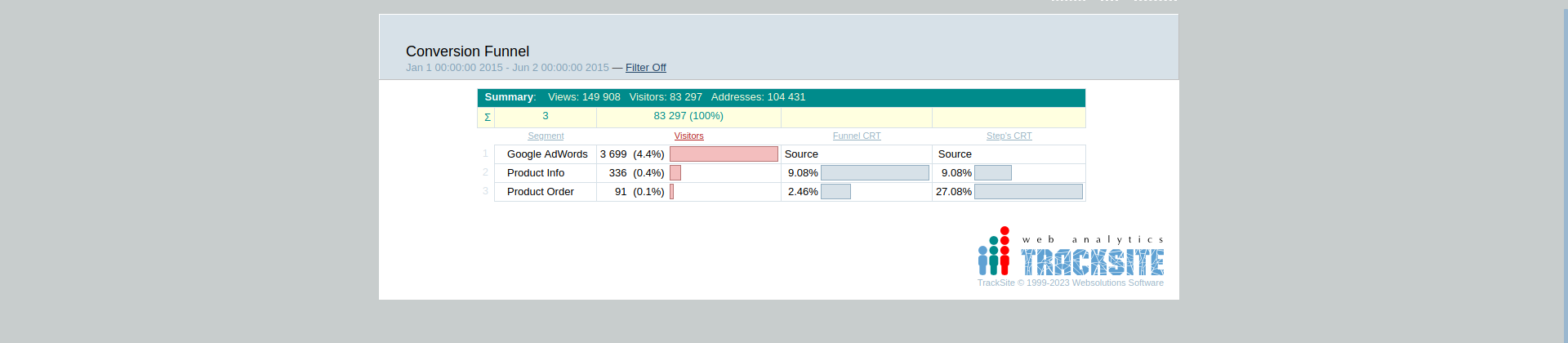 TrackSite's unparalleled segmentation capabilities allow for advanced analysis of online business and visitors behavior.