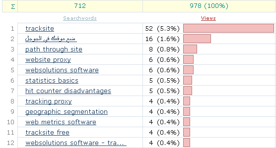 TrackSite Search phrases used by your visitors to search your site and tracked by TrackSite Analytics allow to precisely differentiate your visitors by their specific motivation and use search phrases for segmentation and conversion analysis to know which search phrases used are converting better and/or paying more.