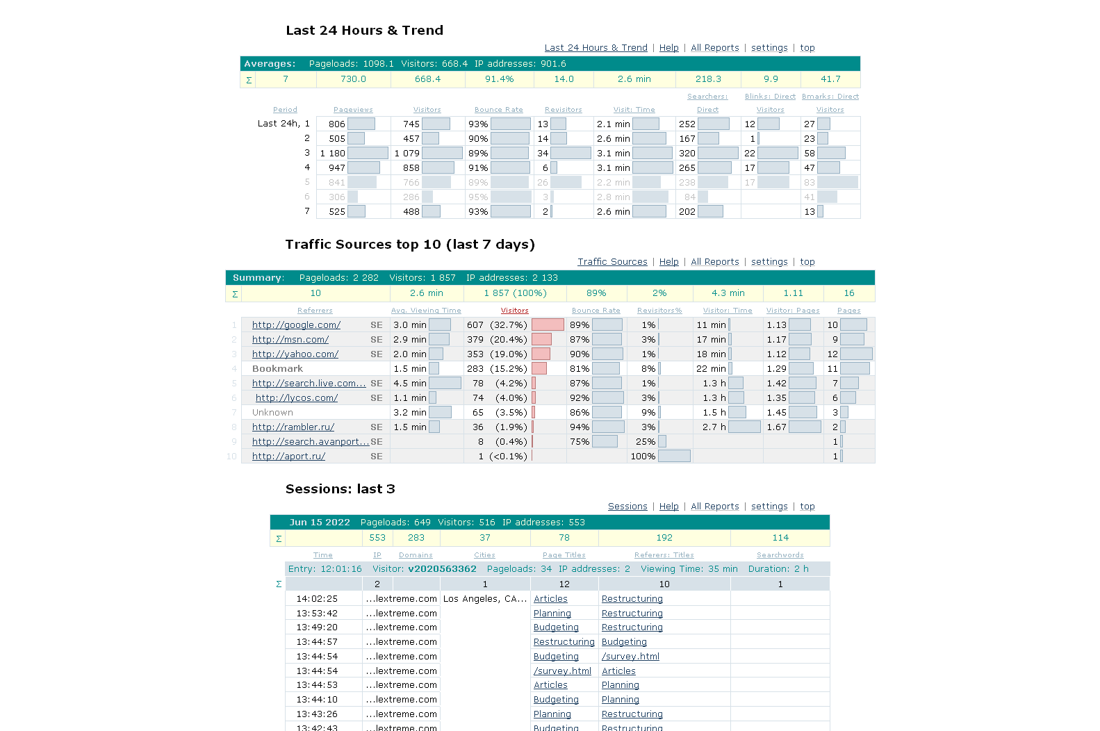 Hosted on website, TrackSite Analytics webserver is up whenever your website is running and, thus, free from data losses that are otherwise due to maintenance and/or downtime due to peak hours overload of overcrowded mass third-party service of web analytics when such third-party web analytics service is temporarily shortly down while your website is running.